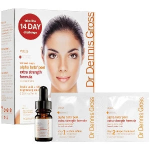 Dermatologist-formulated, a two-step daily face peel for brighter, firmer and smoother skin. This 14 Day Challenge is formulated to reduce prevalent signs of visible aging: enlarged pores, uneven skin texture, and fine lines and wrinkles. Packed with a blend of alpha and beta hydroxy acids to help eliminate dullness and improve skin texture. This product works to minimize scarring and decrease excess oil production, creating a clearer and youthful-looking complexion in as little as 14 days.