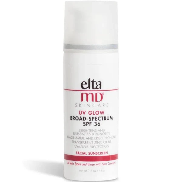 EltaMD UV GLOW BROAD SPECTRUM 36 is an all mineral sunscreen that leaves your skin with a luminous, healthy glow. Packed with skin-brightening antioxidants (niacinamide and ergothioneine), this formula is perfect for anyone with skin prone to discoloration. Skin-hydrating agents (hyaluronic acid and coconut fruit extract) to keep the skin moisturized and supple.