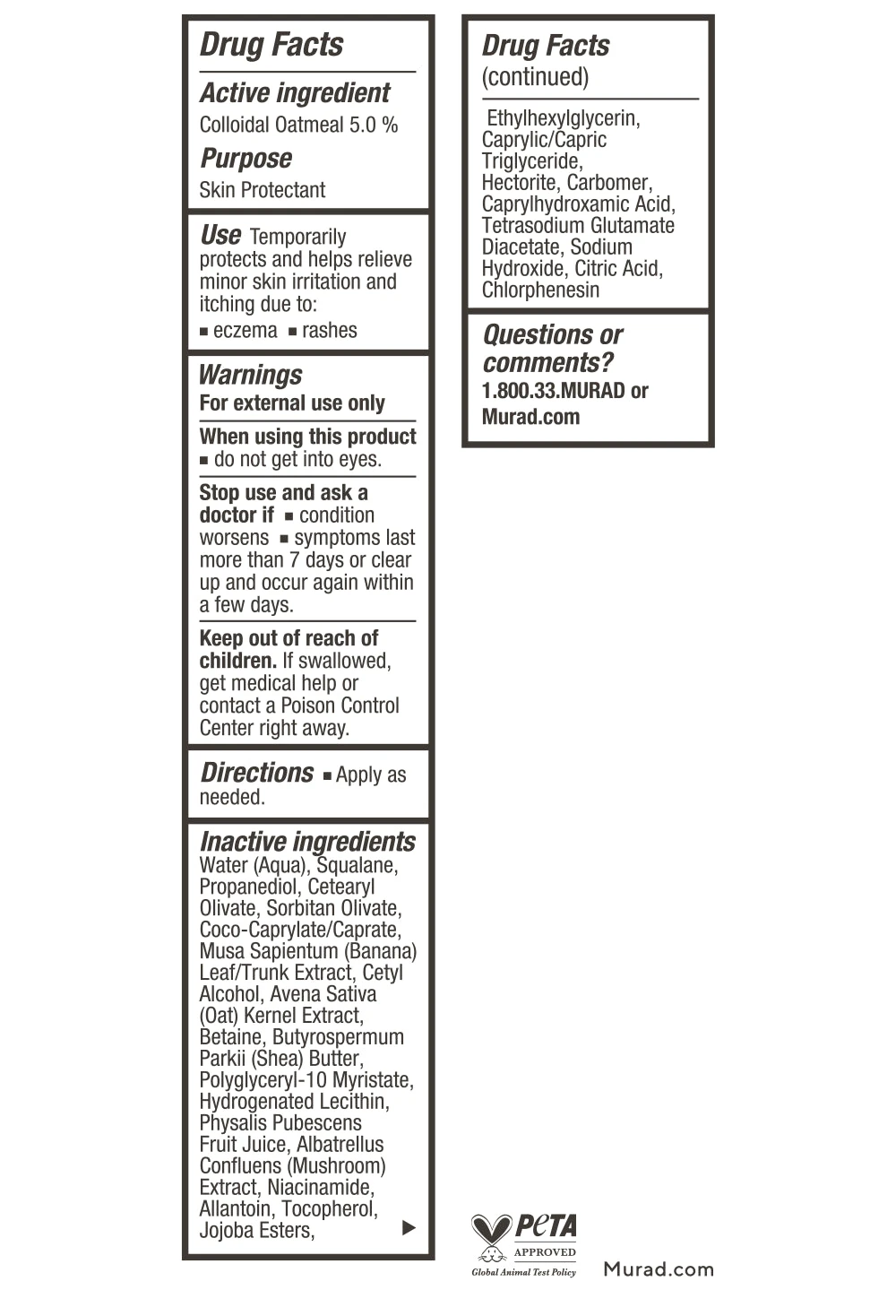 Made with 5.0% concentrated colloidal oatmeal to combat minor irritations caused by eczema or sensitivity and ground cherry to rapidly soothe, replenish and hydrate the skin. This fast-acting therapeutic cream works off itch, rash and irritation to help bring back skin to a calm state.Â